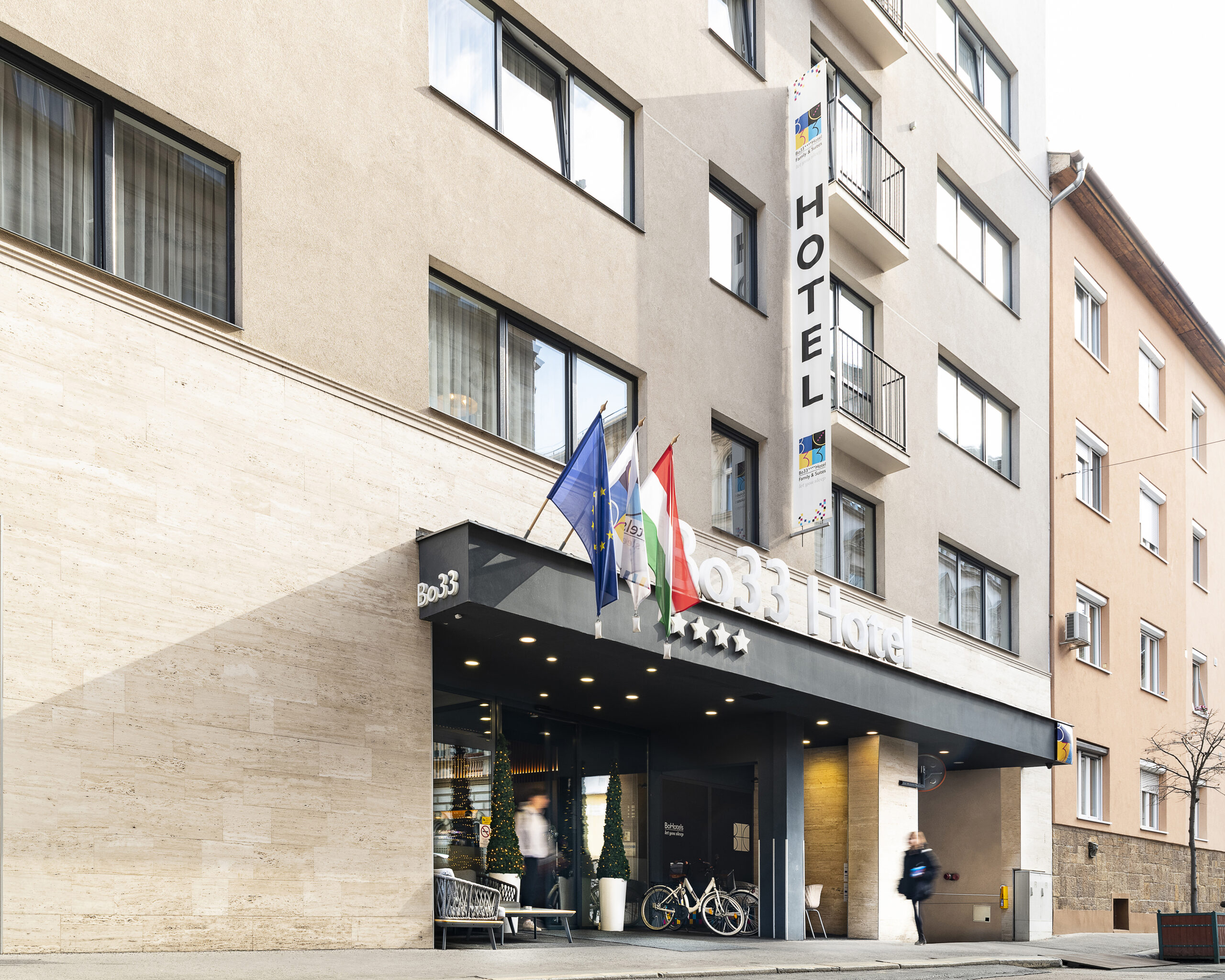 After our first hotel, Bo18 Hotel***Superior Budapest, became one of the market leaders in its category, we wanted to continue this success. Thus, in 2015, the 72-room Bo33 Hotel****Family & Suites, a 4-star family-friendly boutique hotel, was opened in the 7th district of the capital, near the city center where pets are also welcome.
