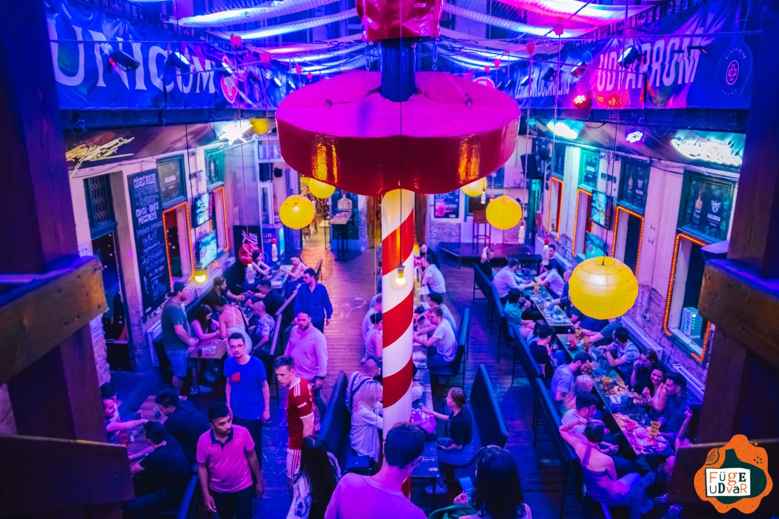 Füge Udvar is a vibrant ruin pub located in the heart of Budapest, offering a diverse range of events and lively nightlife. Its spacious courtyard and eclectic music styles make it the perfect spot for gatherings and parties. The venue frequently hosts live music, DJ nights, and themed events.