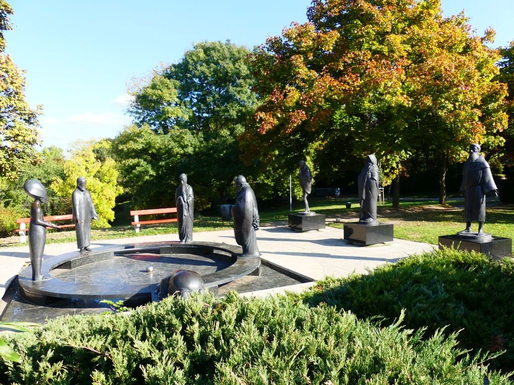 This garden is home to a beautiful sculpture group created by Nándor Wagner, featuring five great thinkers from different cultures standing in a circle: